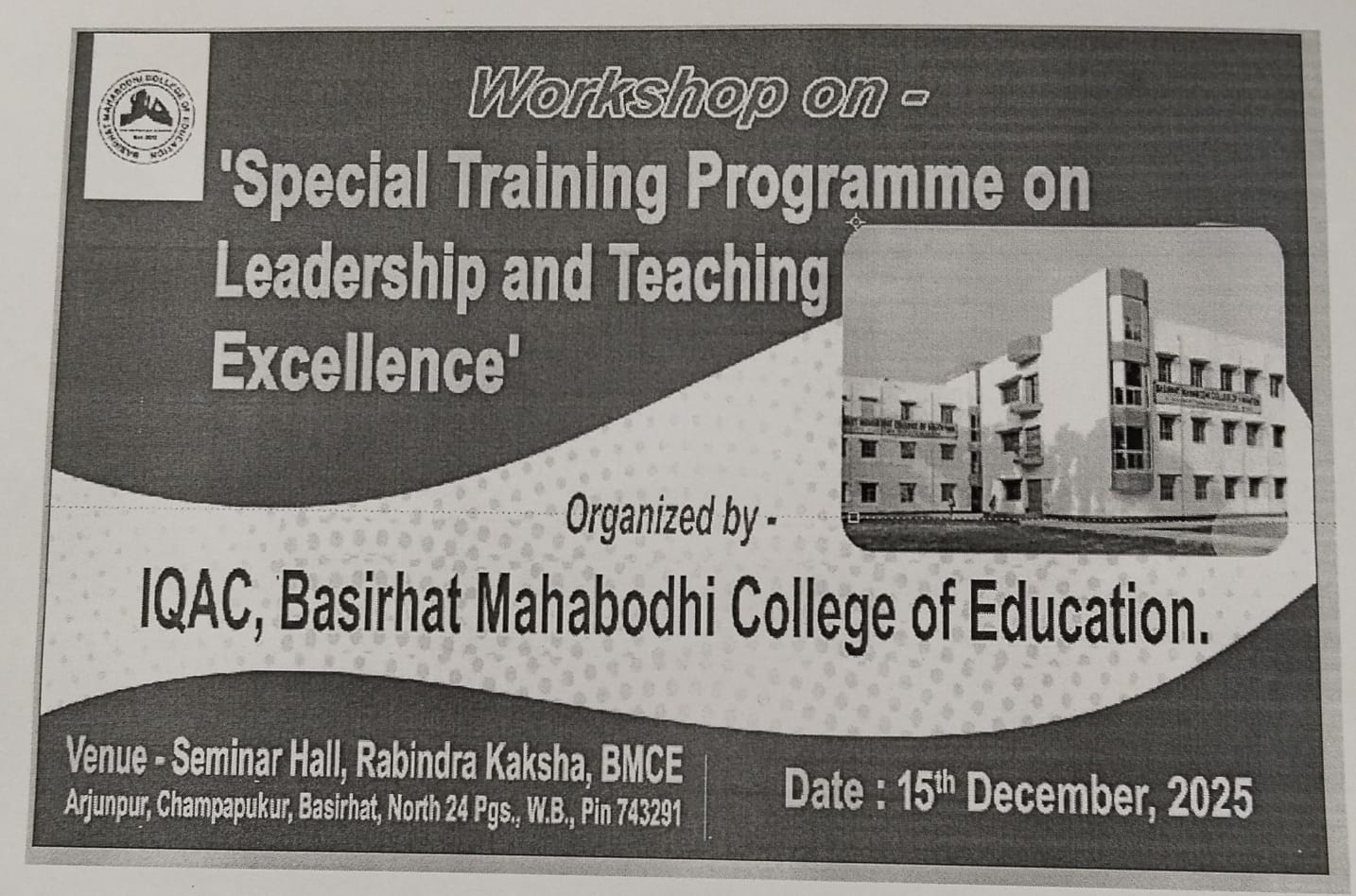 Welcome to Basirhat Mahabodhi College of Education (BMCE), an institution of teacher education (B.Ed & D.El.Ed) at Champapukur in Basirhat sub-division. It is gratifying to note that Basirhat Mahabodhi College of Education (BMCE) with its academic excellence and achievement, has a proud distinction in the in the Teaching / Educational field amongst all private / self financed institutions in West Bengal. Wishing all a grand success ahead.
